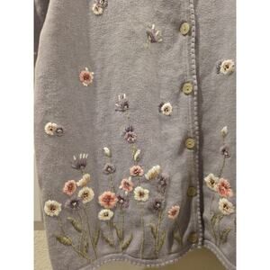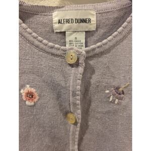 VTG Alfred Dunner Sweater Lavender Cardigan Embroidered Floral Sz S Cotton Ramie