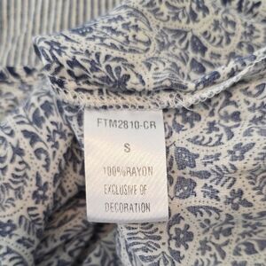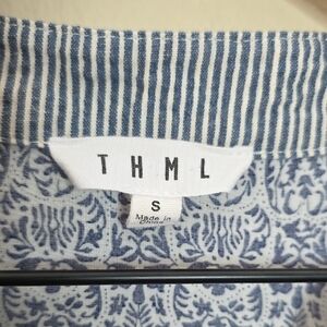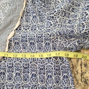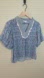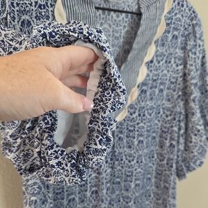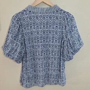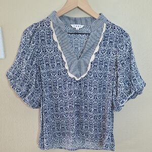 THML Top Alayah Floral Striped Ric-Rac Puff Sleeve Blue White Womens Size Small
