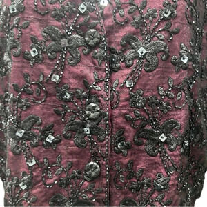 Surya Burgundy Red & Black Beaded Sequin Floral Embroidered Vest Top Waistcoat, Size XL ~ New without tags!