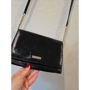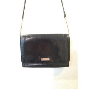 Kate Spade New York Black Patent Leather Chain Strap Credit Card Crossbody Bag
