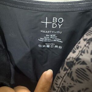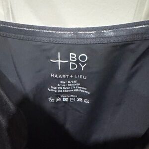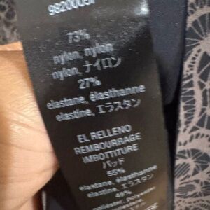 This stunning black lace mini dress is perfect for any occasion. Its elegant design and intricate lace pattern make it a must-have in your wardrobe. Retails for $198. The removable pads are kissing. Unbelievable quality. Stunning detailing. Was it measured 13” laid flat. Super stretchy.