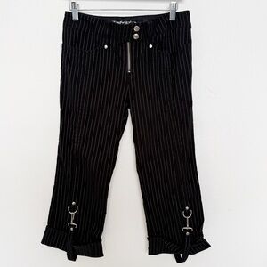 Vintage Y2K Lip Service Gangsta Pranksta Black Pinstripe Capri Pants with bondage straps