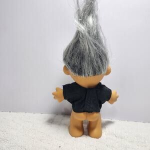 This is a vintage Russ Troll Doll known as "The BIG One" featuring distinctive grey hair. A nostalgic collectible, this troll doll is perfect for enthusiasts or anyone looking to add a retro touch to their collection.