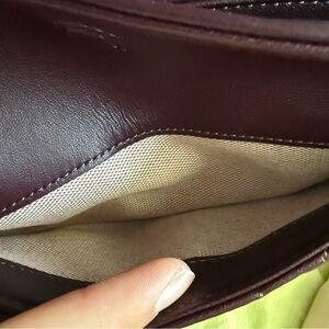 Dustbag and tags included. Elegant quilted leather shoulder bag in a rich burgundy color. Features a stylish chain strap and a classic design, perfect for any occasion.