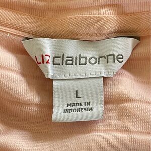 Liz Claiborne Light Pink Textured Short Sleeve Top Pastel Pink Blush Folded Cuff Round Scoop Neck