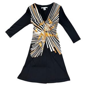 Diane Von Furstenberg 3/4 Sleeve Black Yellow Sunburst Silk Knee Length Dress 10