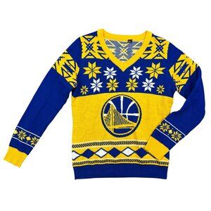 Golden State Warriors Ugly Xmas Sweater Knit Plaid Retro Big Logo XL