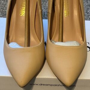 Step out in style with these elegant tan heels from Dream Pairs. Perfect for any occasion, these shoes offer both comfort and sophistication.
