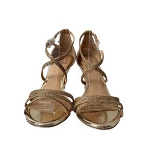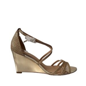 Jewel Badgley Mischka Hunt Wedge Sandals Ankle Strap 8.5 Metallic Gold Glitter