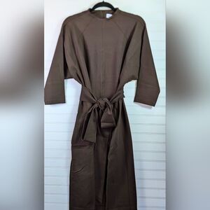 Pari Passu NWT Janice Funnel Dress Espresso Brown Midi 3/4 Sleeve Size D16