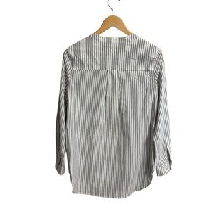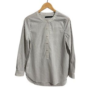 A cotton blend popover with faded indigo chambray stripe