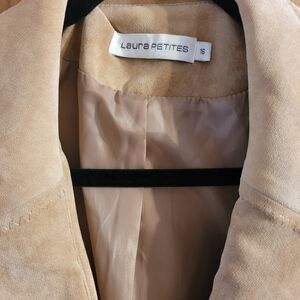 Elevate your wardrobe with this beautiful faux suede tan blazer, perfect for any occasion. Its stylish design offers a blend of functionality, comfort and style, perfect for casual or dressed up.