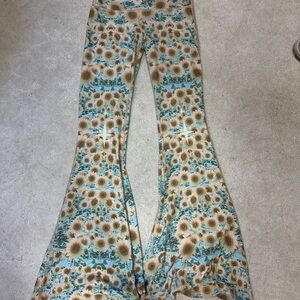 Teeki Sunflower Bell Bottom Flare Leggings Small