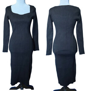 Area Stars Black Ribbed Knit Sweater Midi Dress Small NWT Long Sleeve Office