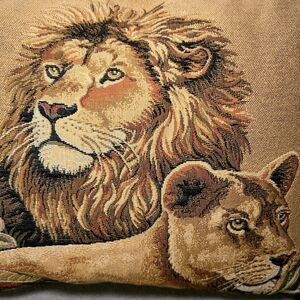 Ashford Court Lion & Lioness Animal Print Tapestry Pillow 21' X 15'