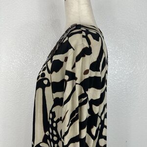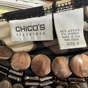 Chicos Travelers Top Women Size 2 Large Animal Print Beaded Neckline Slinky Knit