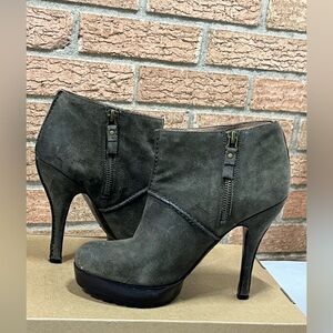 Modern Vintage Brand Olive leather platform stiletto booties - 38/8