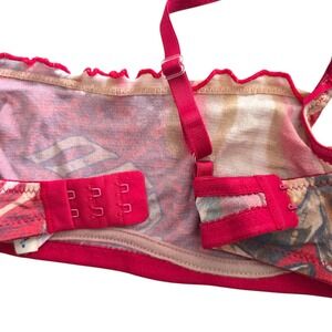 Y2K Hanna Lingerie Size 34 Mesh Bralette Red Graphic Print