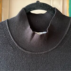 Chic black midi dress. Sleeveless with a high neckline. Perfect for versatile styling.