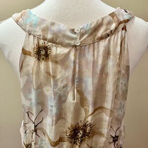 Le Reganne silk blend soft floral maxi dress. Elastic waist and two button up back of neck. Sheer with liner underneath. Length from neckline is 50 inches and size Large. Really great condition and great to wear for a summer wedding! Made in Italy