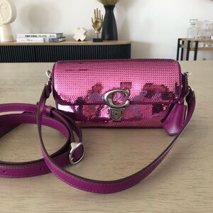 Chic black crossbody with striking gold chain. Ideal for versatile styling.