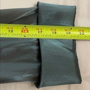 Blue-green, 65% polyester 35% nylon, wrap style jacket, blouse, top with a multi layer collar by Cachet in a women's size 12. Fully lined. The fabric has a sheen to it. There are some ruching and pleating accents. Front snap and rear zipper closures. Long cuffed sleeves. The fabric has some stretch to it. Dry clean. Approximate measurements shown in photos. One side of the label has become detached. See photos. Pair with a variety of bottoms to create multiple formal and semi-formal looks. In great pre-owned condition.