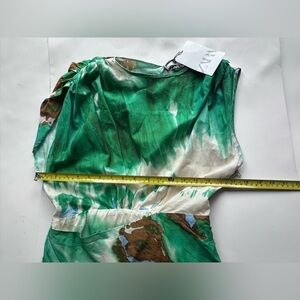 New Zara bloggers favourite Short Printed Asymmetric Dress Green printed