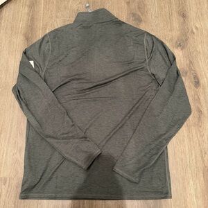 New with tags Vuori Men’s long sleeve light jacket with quarter zipper. Size large. Light weight material. Very soft. Dark gray with quarter zipper on front. 88%. Polyester. 12% elastanne. Pit to pit measurement is about 21 inches. Length of sleeve from shoulder scene About 27.5 inches. Overall length from shoulder seems is about 28 1/2 inches smoke and pet free home. Accepting offers periods on and save!