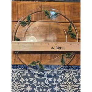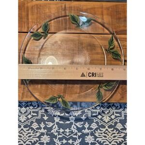 Showcase your delicious creations with this charming glass covered cheese, fruit or desert dome. The clear glass dome is adorned with a vibrant hand-painted design featuring an assortment of ripe fruits, including apples, pears, and grapes, intertwined with lush green leaves. This piece brings a touch of rustic elegance to any table, perfect for displaying pies, cakes, pastries, or even cheeses. Elevate your dessert presentations at brunch gatherings, holiday dinners, or intimate celebrations.