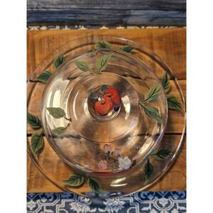 Keywords: glass cheese cloche, dome server, fruit decor, hand painted glass, dessert platter, kitchenware, serving dish, vintage style, farmhouse kitchen, entertaining, food display, artisan bakeware
