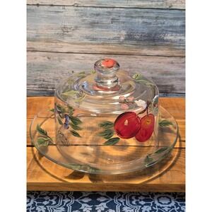 Home Essentials and Beyond Glass Covered Cheese Dome Hand Painted Fruit Design