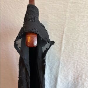 Chic black blouse with textured design. Sleeveless and stylish. Perfect for versatile wear.