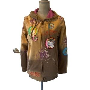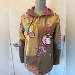 This Ed Hardy hoodie by Christian Audigier features paint splatter and Hollywood Koi Fish, Beautiful vibrant colors, Full zip closure, Great condition, 100% Cotton