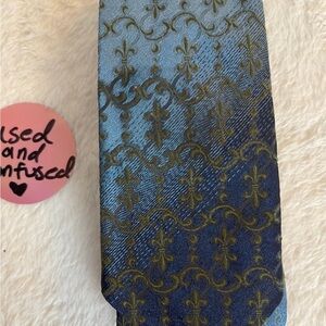 Stylish tie with intricate blue and gold design. Ideal for formal events.