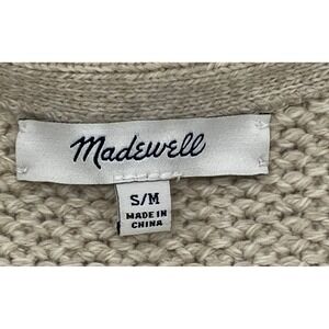 Elevate your layering game with this chic Madewell knit vest. The classic tan base is artfully accented with crisp navy and white stripes, creating a timeless visual appeal. Crafted with a soft, textured knit, this vest promises cozy comfort and effortless style. The playful fringe detailing along the hem adds a touch of bohemian flair, making it a perfect statement piece for casual outings or a stylish addition to a layered weekend ensemble.