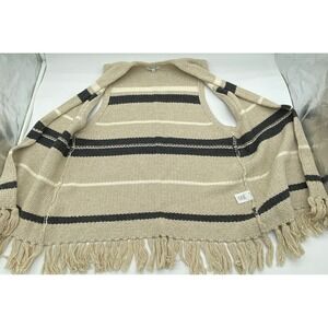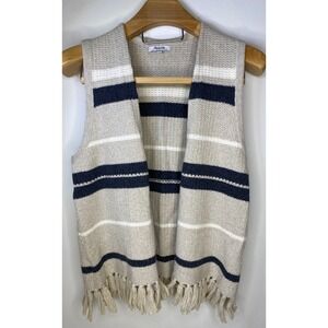 Madewell Striped Knit Vest Fringe Tan Navy White S M