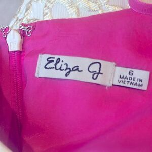 Nwot Eliza J. gold and cream patterned A-line sleeveless cocktail dress w/ pockets. Fully lined. Pit to pit 18”, waist 14”, length 37.5”.