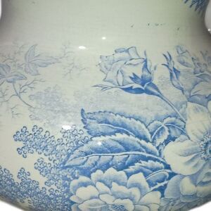 Jardinière: Antique Ironstone French Pitcher -Transferware colors Blue Flowers.