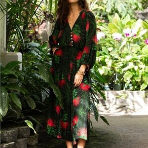 Ava Sky Fighting Eel Green and Red Legua Floral Caroline Jumpsuit Small Pink