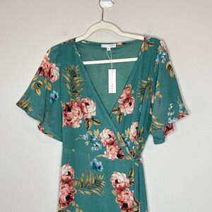 Baltic Born Ivy Wrap Maxi Dress Persian Green Floral Flutter Sleeve Small NWT