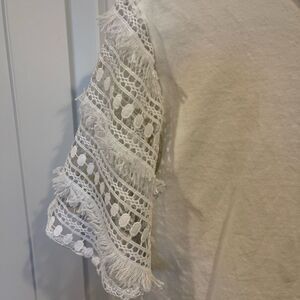 Listicle White T-shirt with crochet sleeves. Soft t-shirt material. Never worn.