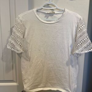 Listicle White T-shirt with crochet sleeves. Soft t-shirt material. Never worn. Size small