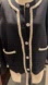 Brand new Chic black cardigan with elegant pearls and stones on buttons cream detailing. Features button closure and pocket accents. Perfect for versatile styling. p-p21.5”and 24” long