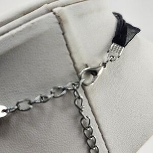 Silver Tone Turquoise Style Rhinestone Pendant Necklace Black Ribbon