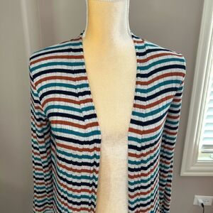 Brand new with tags, adorable long lightweight striped cardigan with pockets. Lots of stretch can fit up to a medium (see measurements)Comes from a smoke free home