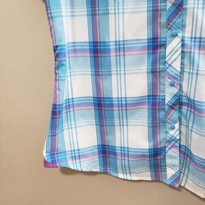 Blue and purple plaid button down shirt