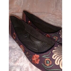 Born Women's Floral Embroidered Fabric Leather Flats 7 Medium 38 EU Brown.