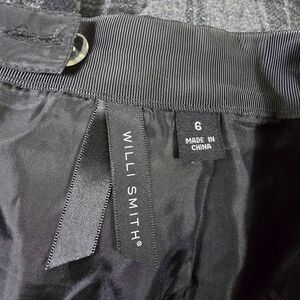 Add a sharp twist to your wardrobe with this black and gray plaid mini skirt from Willi Smith. Featuring a fitted waistband and front pockets, it blends timeless patterning with modern structure—perfect for city strolls, creative workspaces, or layered fall looks.