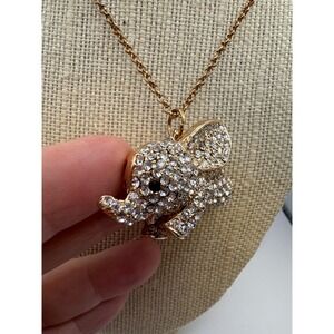 Sparkling Elephant Pendant Necklace Gold Tone Rhinestone Charm Statement Jewelry