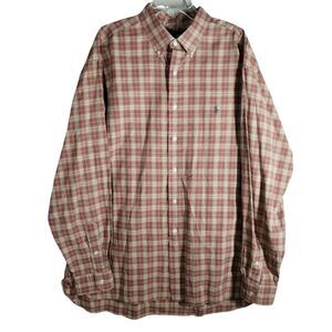 Ralph Lauren McMeel Men's XL Shirt Brown Plaid Long Sleeve Pocket Cotton Preppy